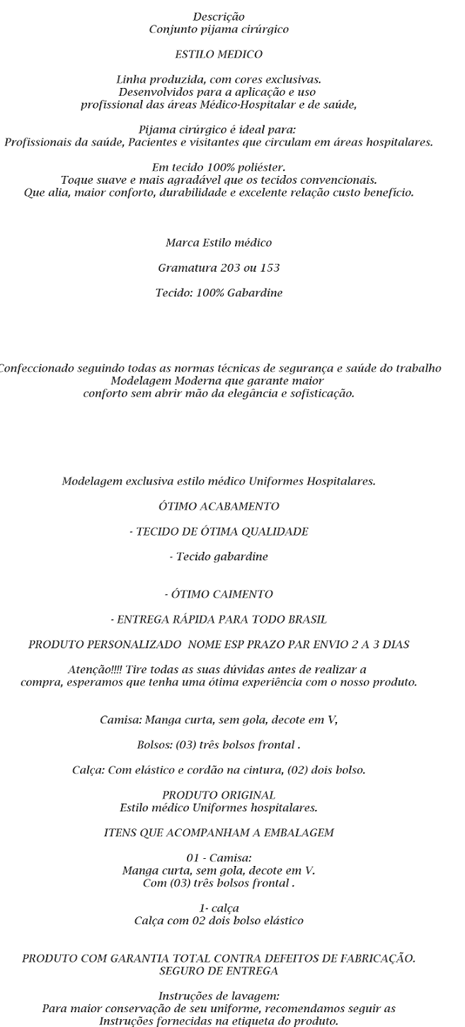 KIT 02 CONJUNTO PIJAMA CIRÚRGICO EM GABARDINE