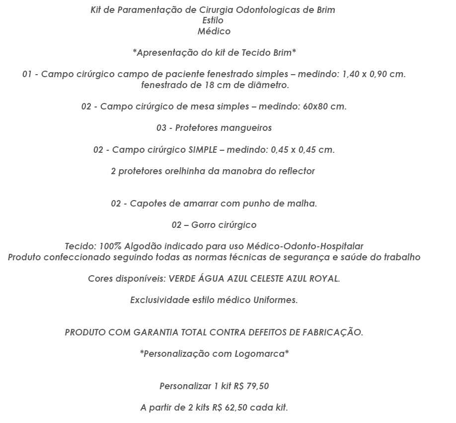 KIT DE CAMPOS & CAPOTES CIRURGIA ODONTOLÓGICAS