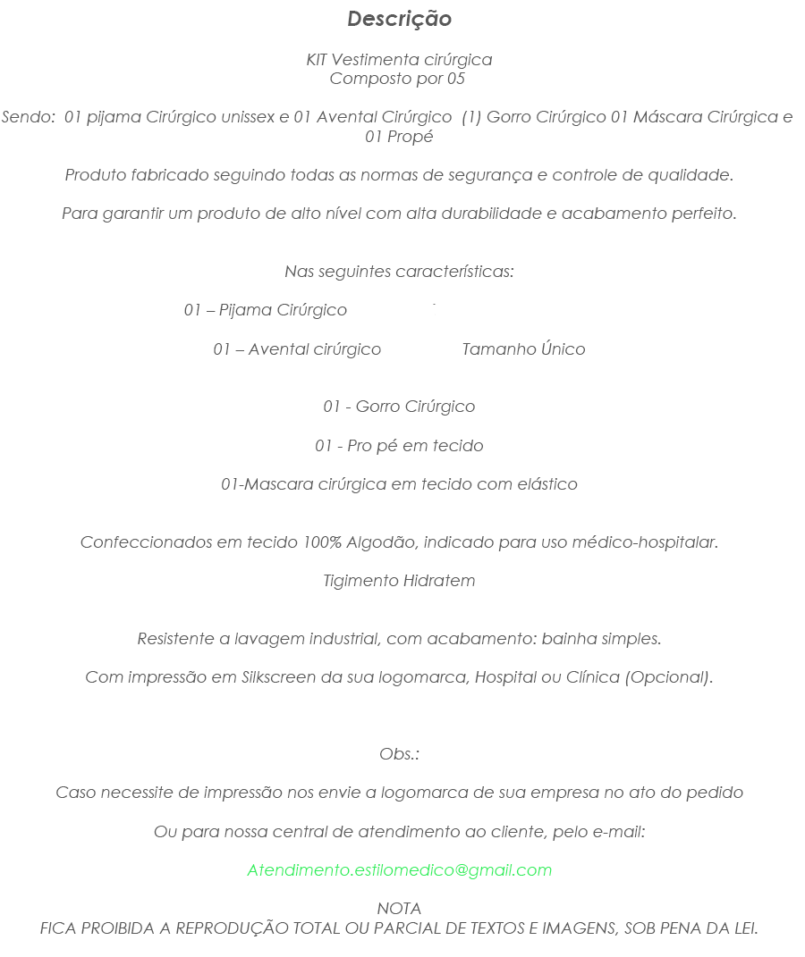 KIT VESTIMENTA CIRÚRGICA - 05 PRODUTOS