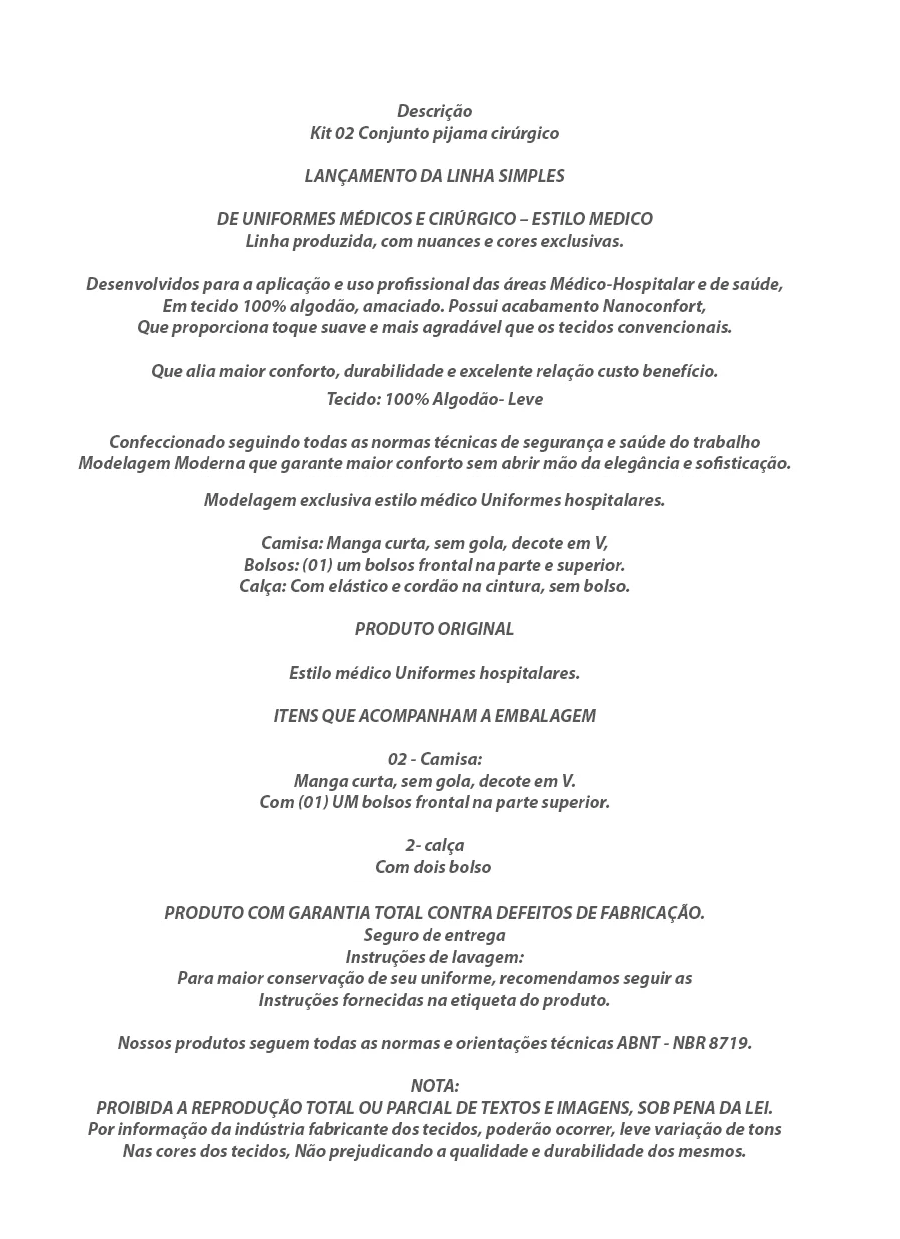 MEGA PROMOÇÃO - 02 CONJUNTOS DE PIJAMAS MÉDICOS CIRÚRGICOS - UNISSEX