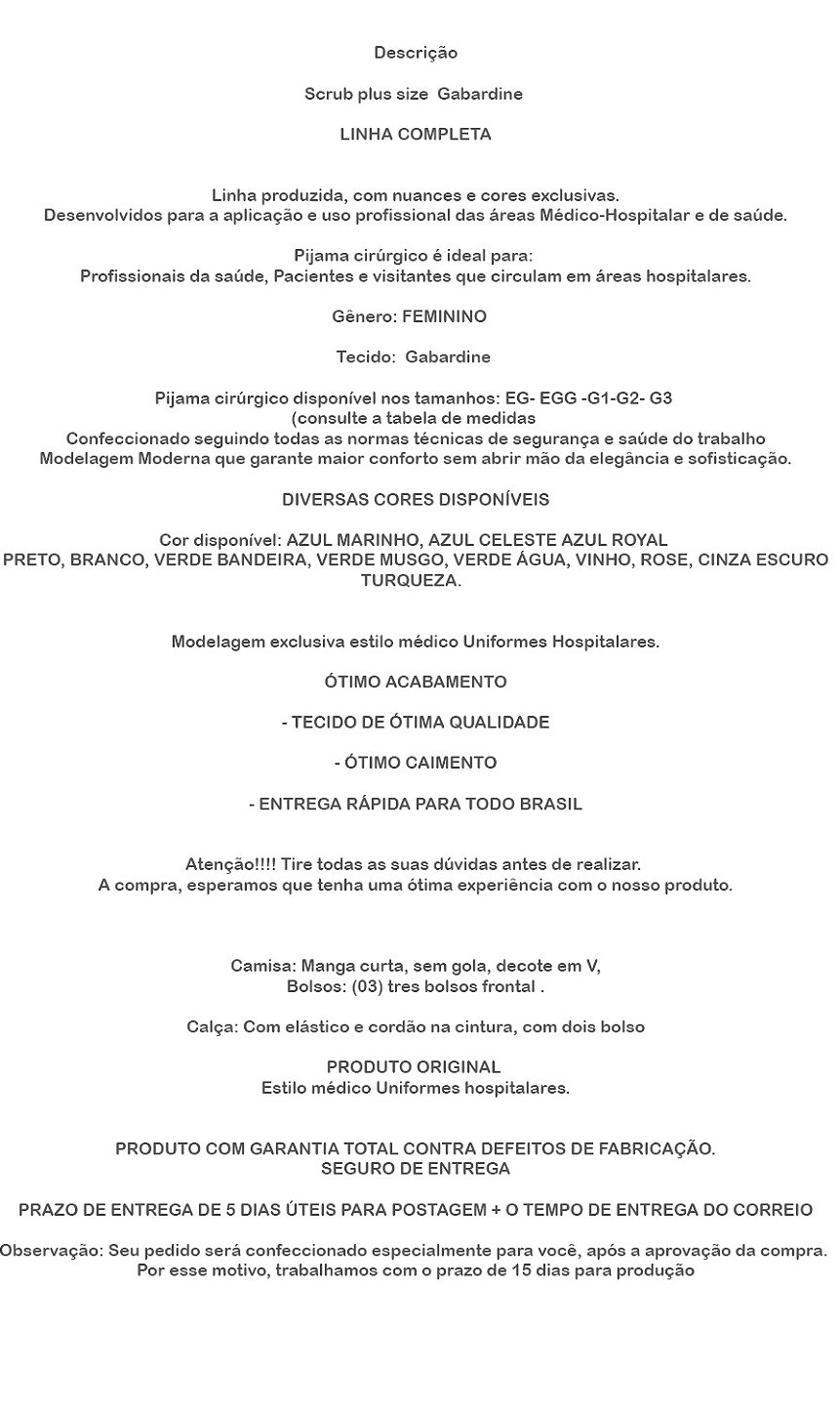 SCRUBS PLUS SIZE FEMININO GABARDINE